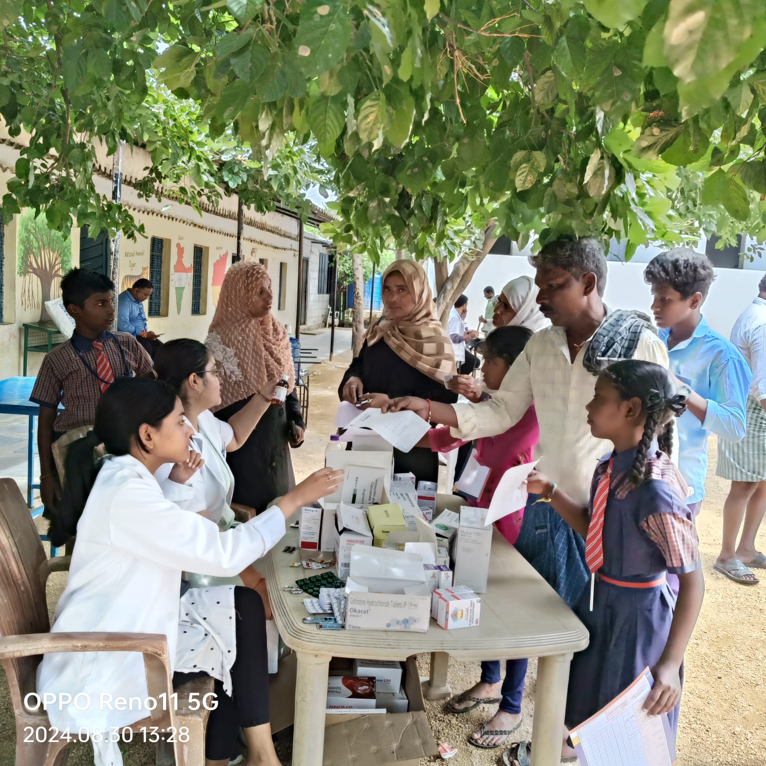 BP, Diabetics check up, BMI, Screening by Ophthalmology, E N T, General Medicine, Pediatrics and OBG Consultants, Opthal Vision Check and free medications given.